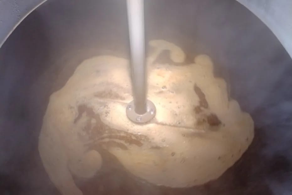 「今回は、甘味とコクが残るように、やや高めの温度帯で糖化をしました。粉砕したモルトをお湯と混ぜ合わせて、マッシュタンで1時間ほど糖化反応を進めました。」